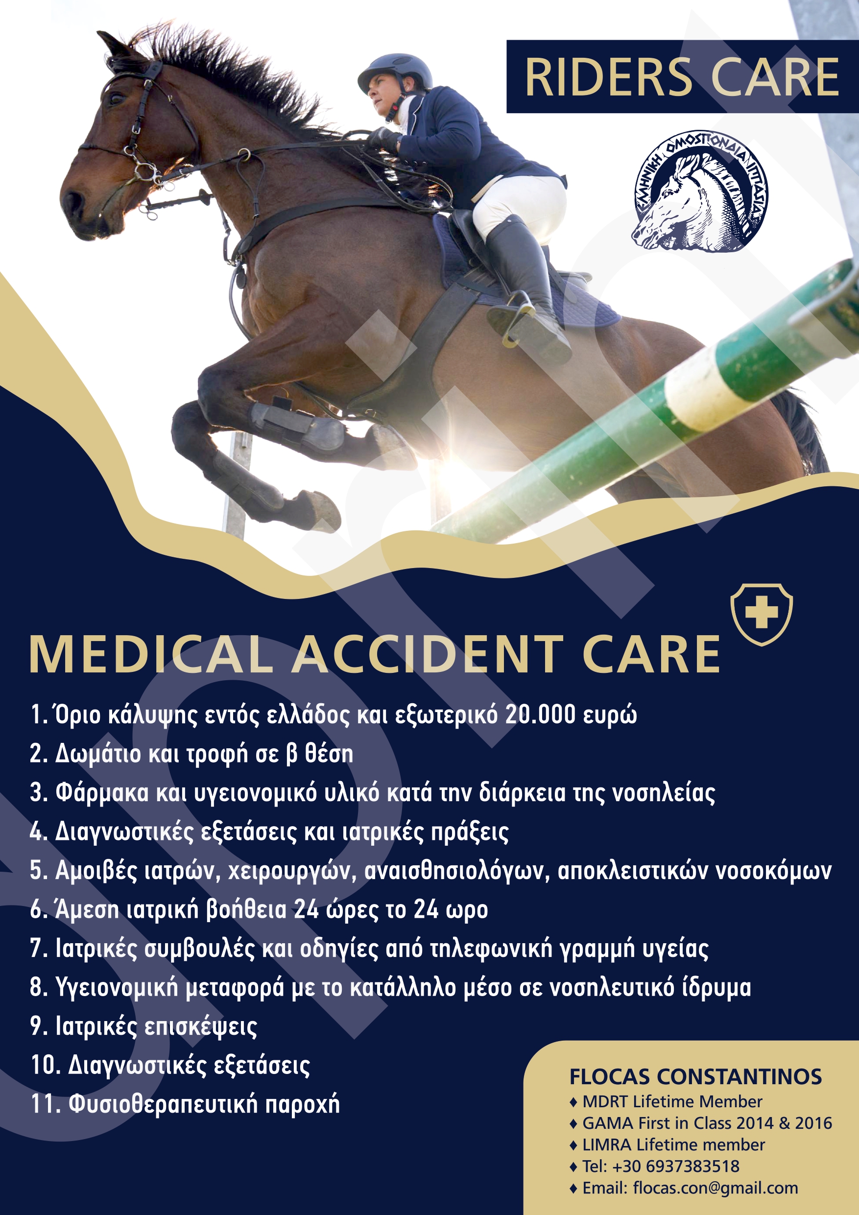 Η Ελληνική Ομοσπονδία ιππασίας – ΕΟΙ, σε συνεργασία με την Εταιρεία Interamerican, είναι στην ευχάριστη θέση να ανακοινώσει την έναρξη ενός νέου και σημαντικού ασφαλιστικού προγράμματος για όλους τους αθλητές των σωματείων-μελών της. Το πρόγραμμα έχει την επωνυμία “Rider Care” και στόχο έχει την καλύτερη προστασία και στήριξη όλων των αθλητών της Ιππασίας, προσφέροντας σημαντικά οφέλη και καλύψεις.